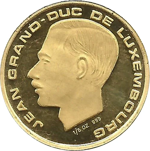 Portrait left of Jean (1921-), Grand Duke of Luxembourg (1964β2000), with legend. Below: "1/5 OZ 999".