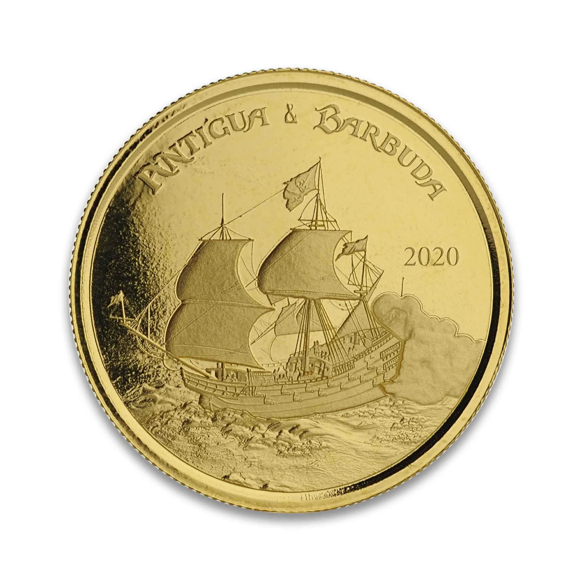 The reverse depicted an 18th-century pirate ship under full sail, smoke billowing from its gun ports.