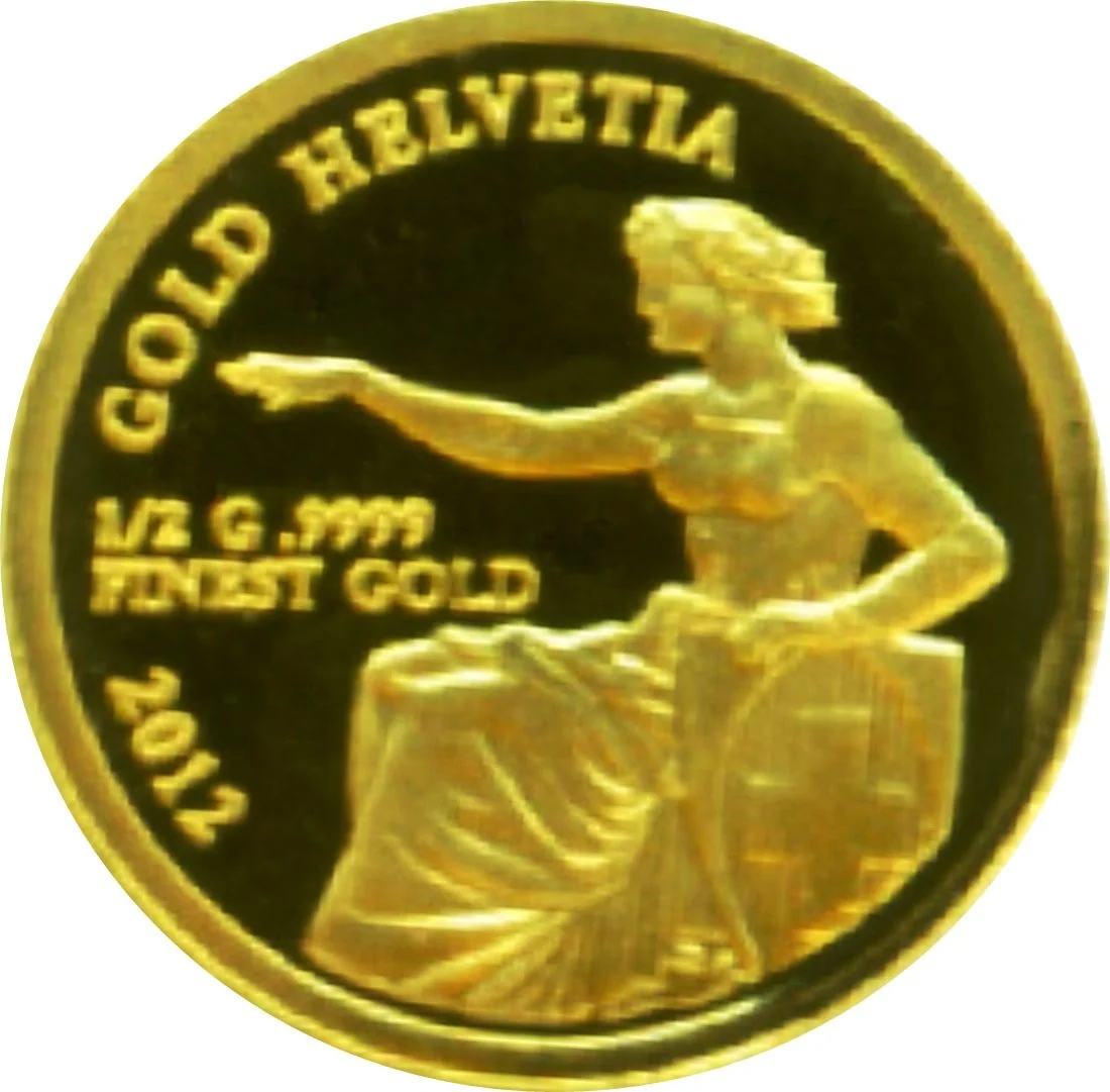 Helvetia seated, pointing. Left: date, metal, weight, fineness.