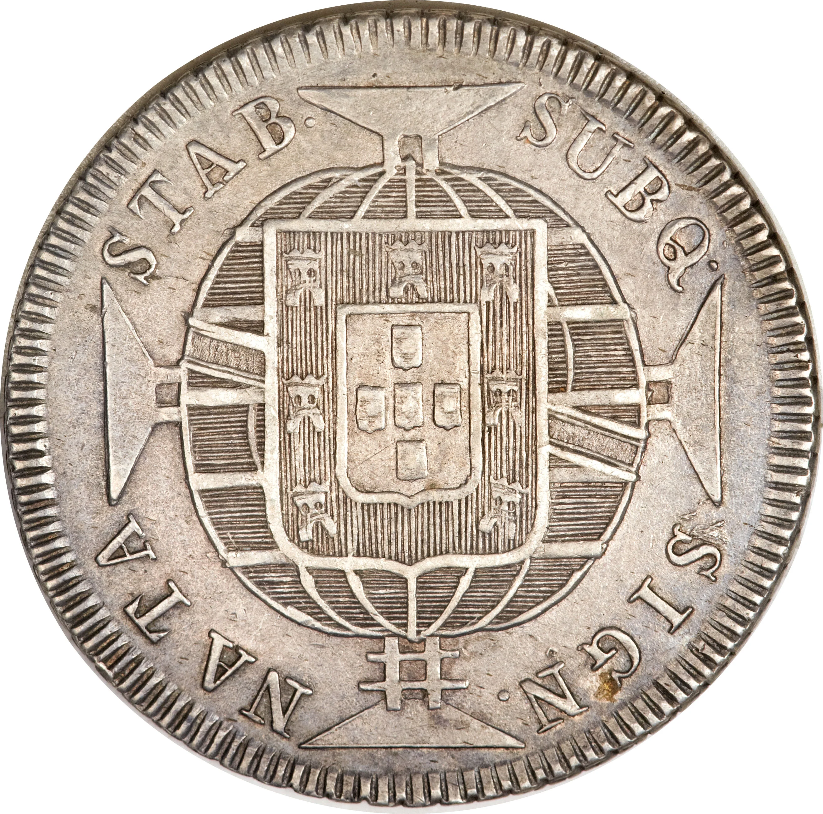 Crowned denomination in wreath. M: Vila Rica (KM#325.1); R: Rio de Janeiro (KM#325.2); B: Bahia (KM#325.3).