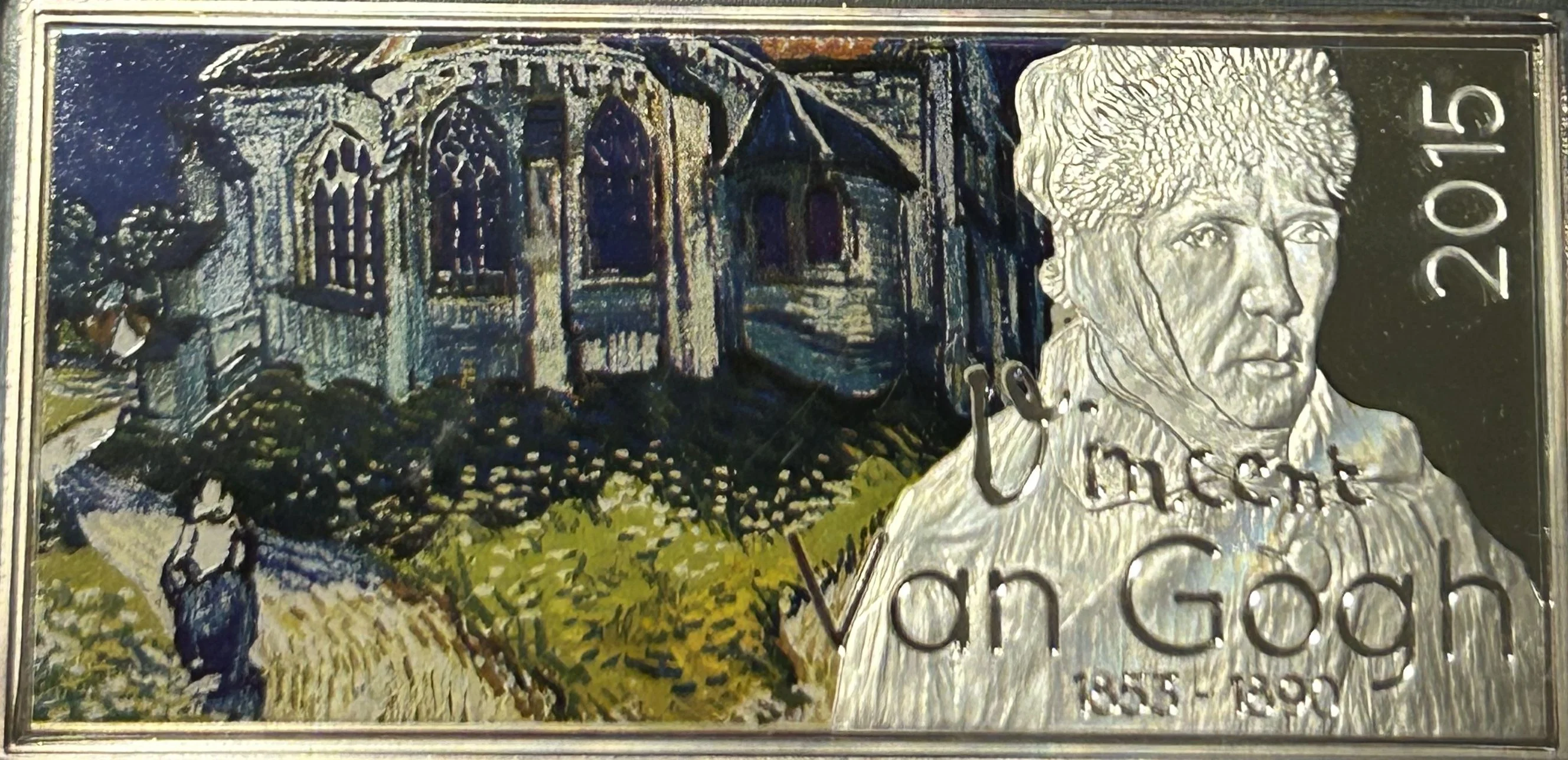 Colorized "The Church of Auvers" with Van Gogh and the date.