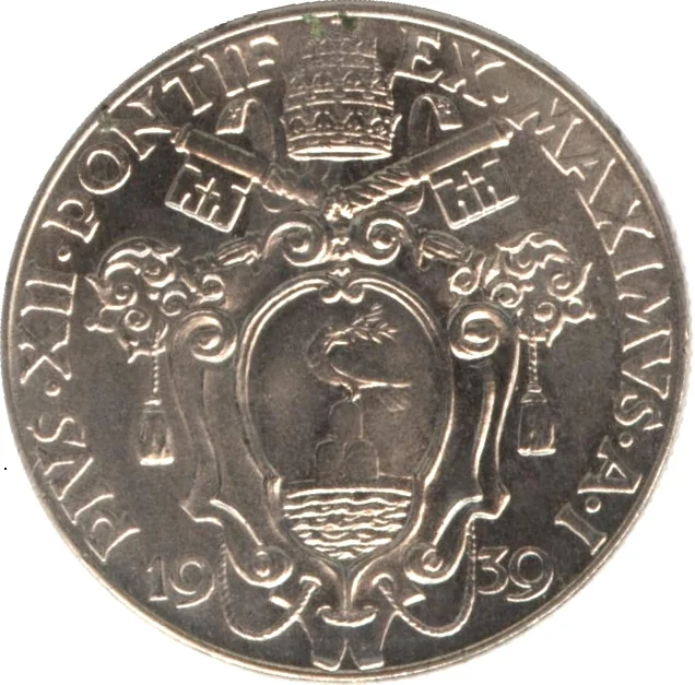 The year 1939 fell within the period of the "Roman Question" being resolved, but also within the autarkic economic policies of Fascist Italy under Benito Mussolini. Italy had left the gold standard in the 1930s, and its currency was controlled and protected. Vatican coinage, minted in limited quantities primarily for collectors and commemorative purposes, adhered to the same metallic standards and denominations as Italian coins. Its practical economic function was minimal, as the state’s revenue came largely from investments and donations (like Peter’s Pence), and its day-to-day financial operations were heavily integrated with the Italian banking and currency system.