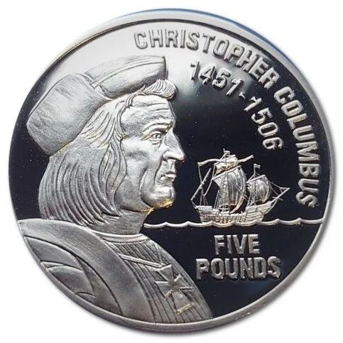 Columbus bust facing right, Santa Maria ship, denomination below.