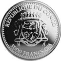 Gorilla image over proof forest. Reverse: "CONGO SILVERBACK GORILLA" above, 2017 and 1 OZ 999 SILVER below.