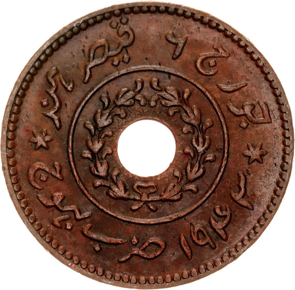 Center: hole with wreath inside plain circle. Outer margin: Urdu legend "George VI, Kaiser Hind, zarb Bhuj," and AD date.