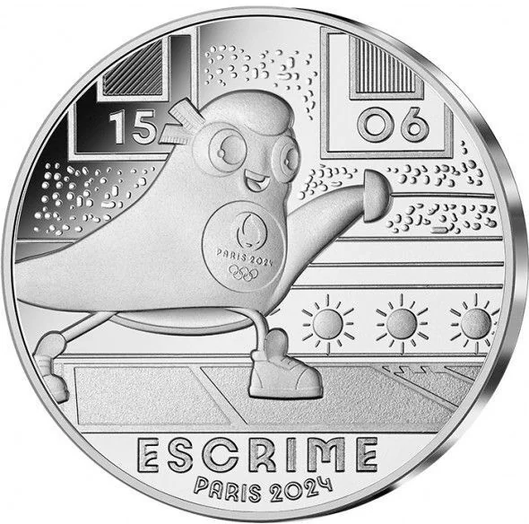 Paris 2024 mascot Phryge attacks, winning the round 15-6 with her foil.