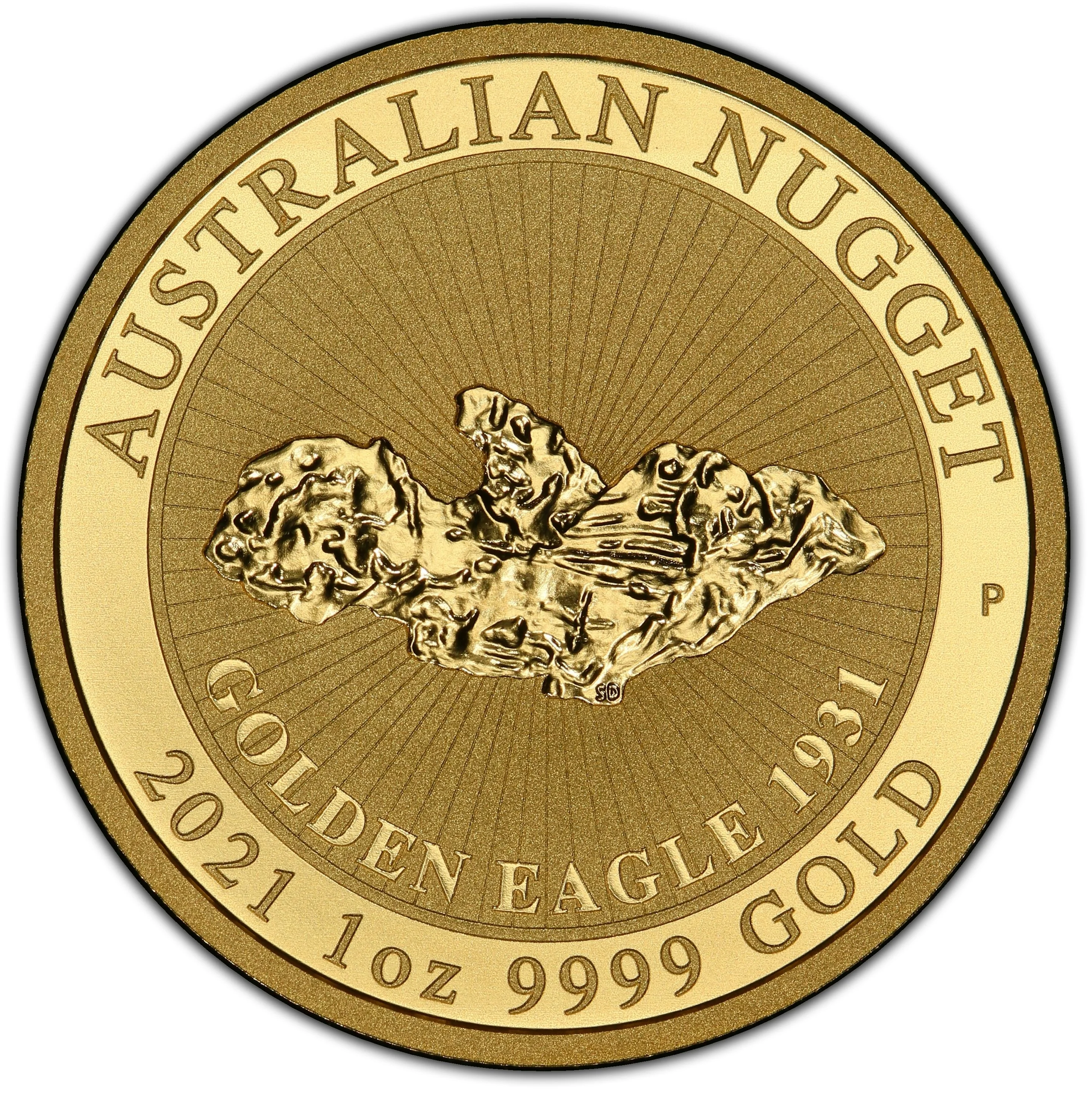 Golden Eagle 1931: central nugget, encircling text.