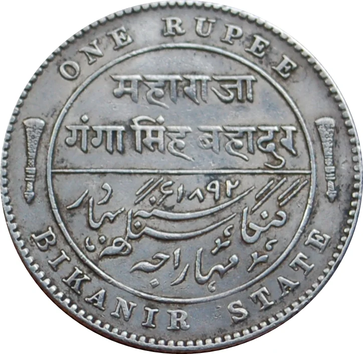 Legend: Maharaja Ganga Singh Bahadur. The 'ain' before ١٨٩٢ (1892) denotes AD.