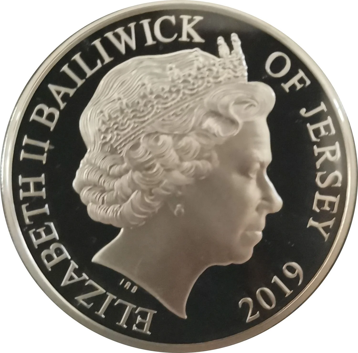 Fourth portrait of Elizabeth II facing right, wearing the Girls of Great Britain and Ireland Tiara, with legend and date 2019.