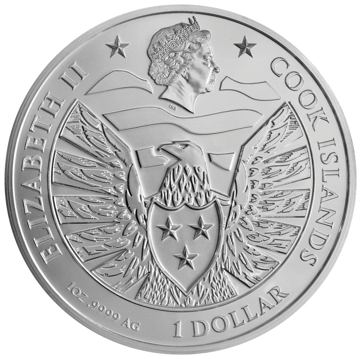 Queen Elizabeth II effigy above eagle.