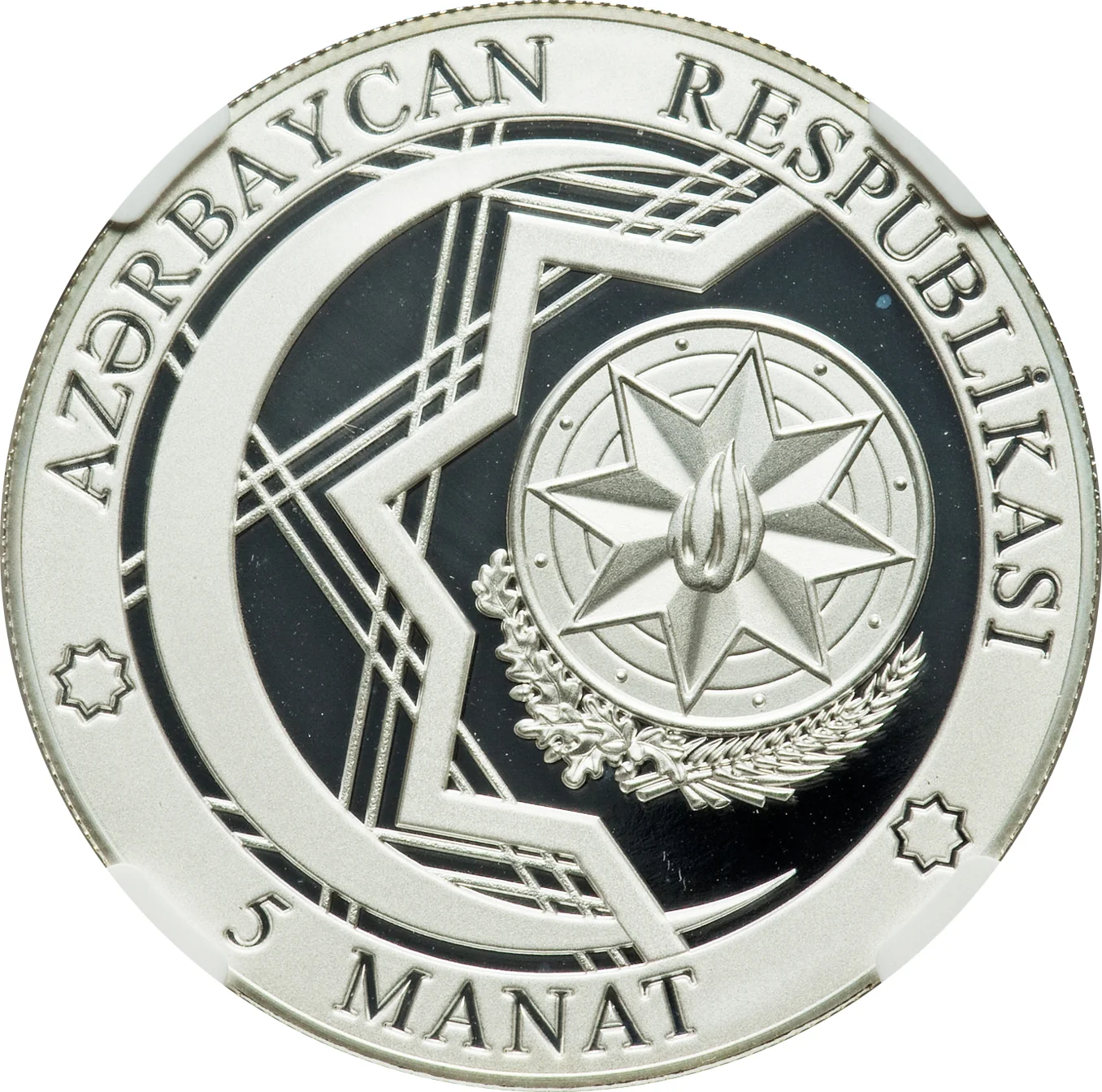 National Coat of Arms with crescent and left-side ornaments, denomination below.