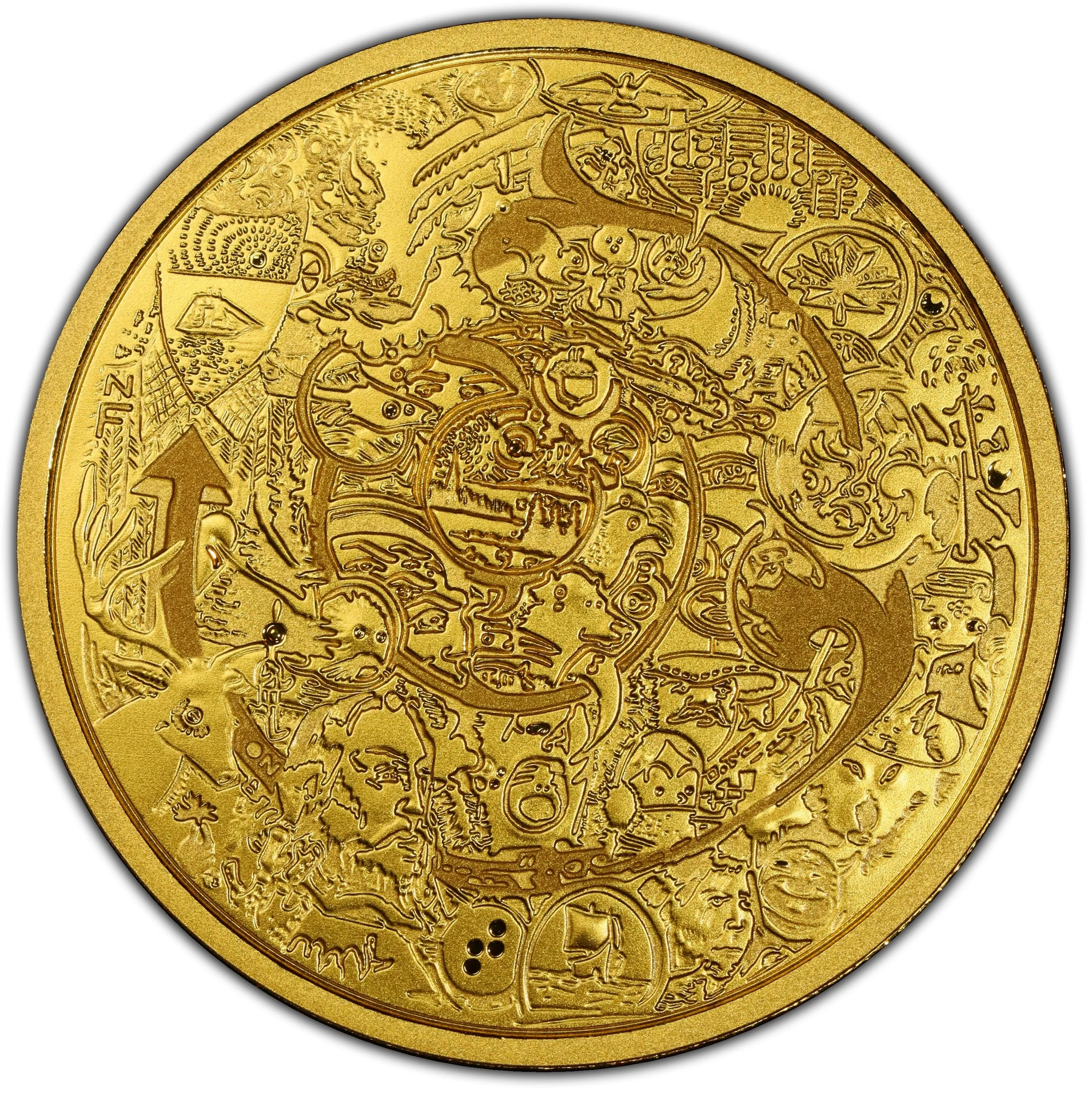 Designed by Tim Barnard, this coin features over 50 images blending iconic Canadian symbols with the artist's personal elements.