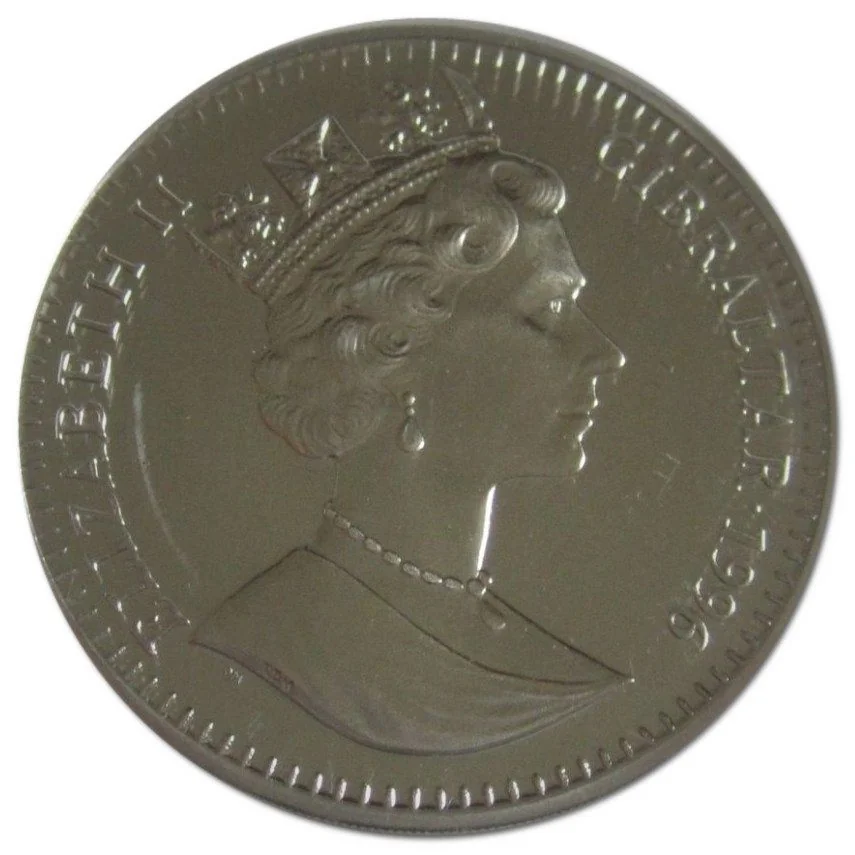 In 1996, the currency situation in Gibraltar was defined by its unique constitutional relationship with the United Kingdom and its practical economic ties with neighbouring Spain. Officially, the legal tender was the Gibraltar pound (GIP), issued by the Government of Gibraltar and pegged at par with the British pound sterling (GBP). Sterling notes and coins also circulated freely and were accepted interchangeably with local issues, underscoring Gibraltar's status as a British Overseas Territory. This dual circulation provided monetary stability and was crucial for an economy heavily reliant on financial services, tourism, and port operations.