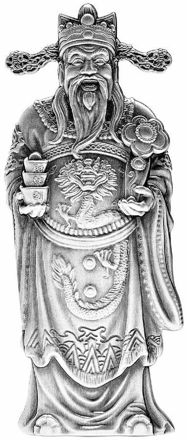Wealth God in robes, holding ingots and a Ru Yi scepter.