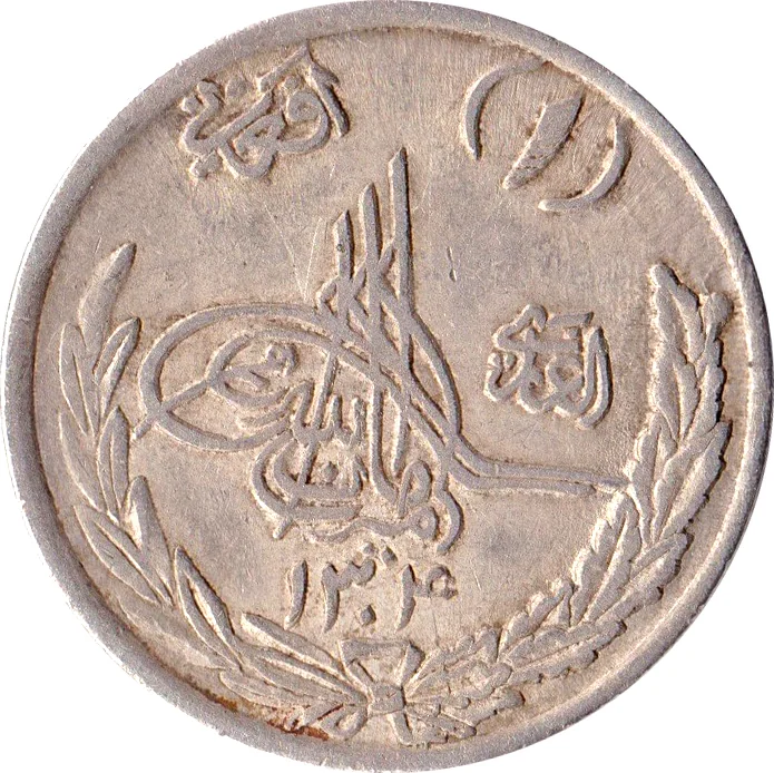 Tughra encircled by legends, wreath below.