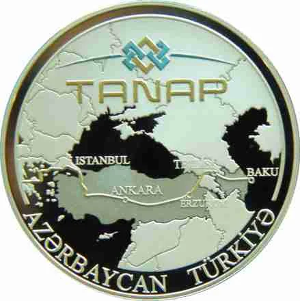 The coin features the TANAP logo and the pipeline route map.
