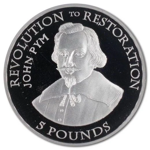 John Pym portrait with encircled inscription and denomination below.