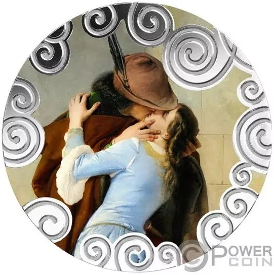 Detail of Hayez's 1859 "The Kiss," lower centre over geometric pattern.