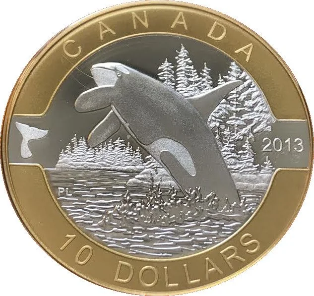 Orca breaching, side view. Date right, denomination below.