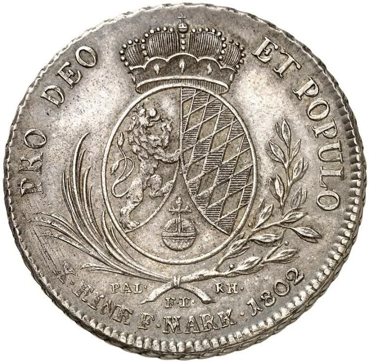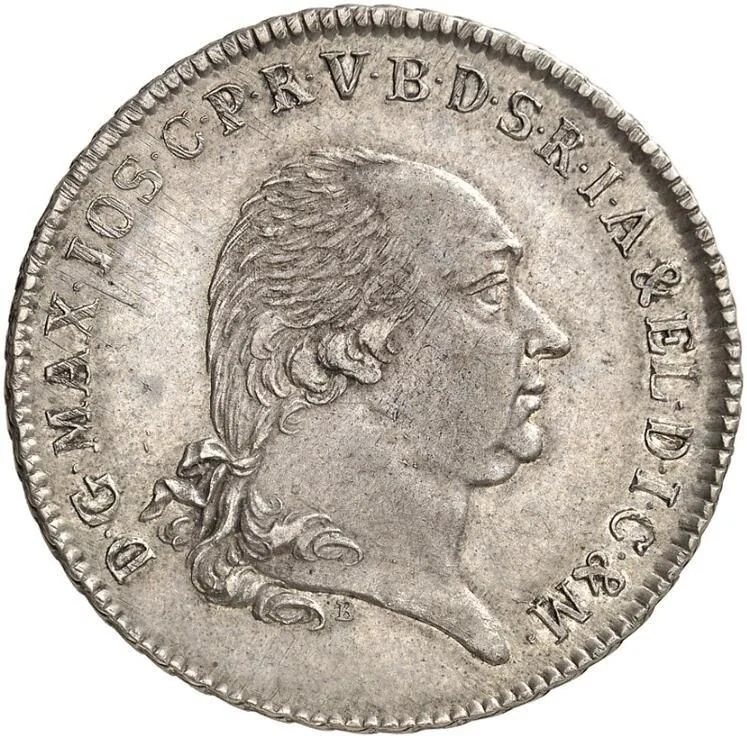 Translation: By the grace of God, Maximilian Joseph, Count Palatine of the Rhine, Duke of Bavaria, Arch-Steward and Elector of the Holy Roman Empire, and Duke of Jülich, Cleves and Berg.