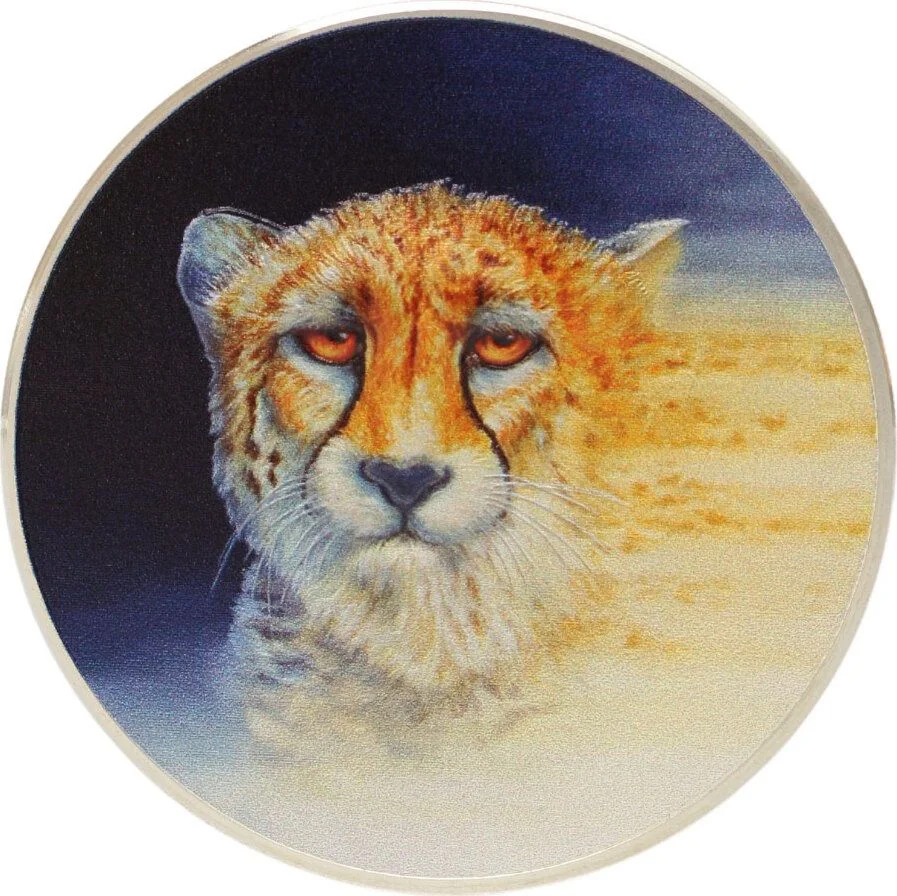 Inscription: ASIATIC CHEETAH - CONSERVATION STATUS: CRITICALLY ENDANGERED-IUCN 3.1 - SPEED: 128 KM/H-80 MPH - COORDINATES: 32.4279° N - 53.6880° E - REMAINING CHEETAHS: 9 MALES - 3 FEMALES AND ONE CUB - THE SURVIVING CUB NAME: PIROUZ