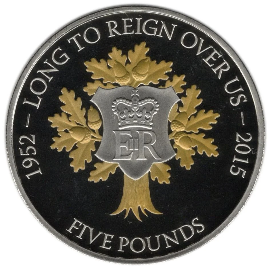 Queen Elizabeth II facing right, surrounded by lettering.