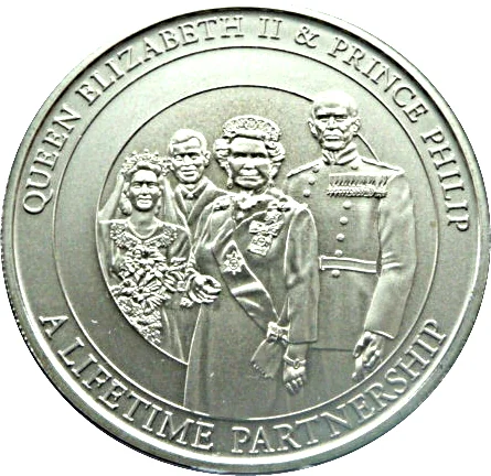 Wedding and modern portraits of Elizabeth II and Prince Philip.