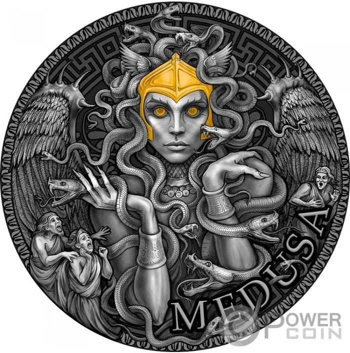 Temple on Mount Olympus encircled by a wreath, with a meander border.