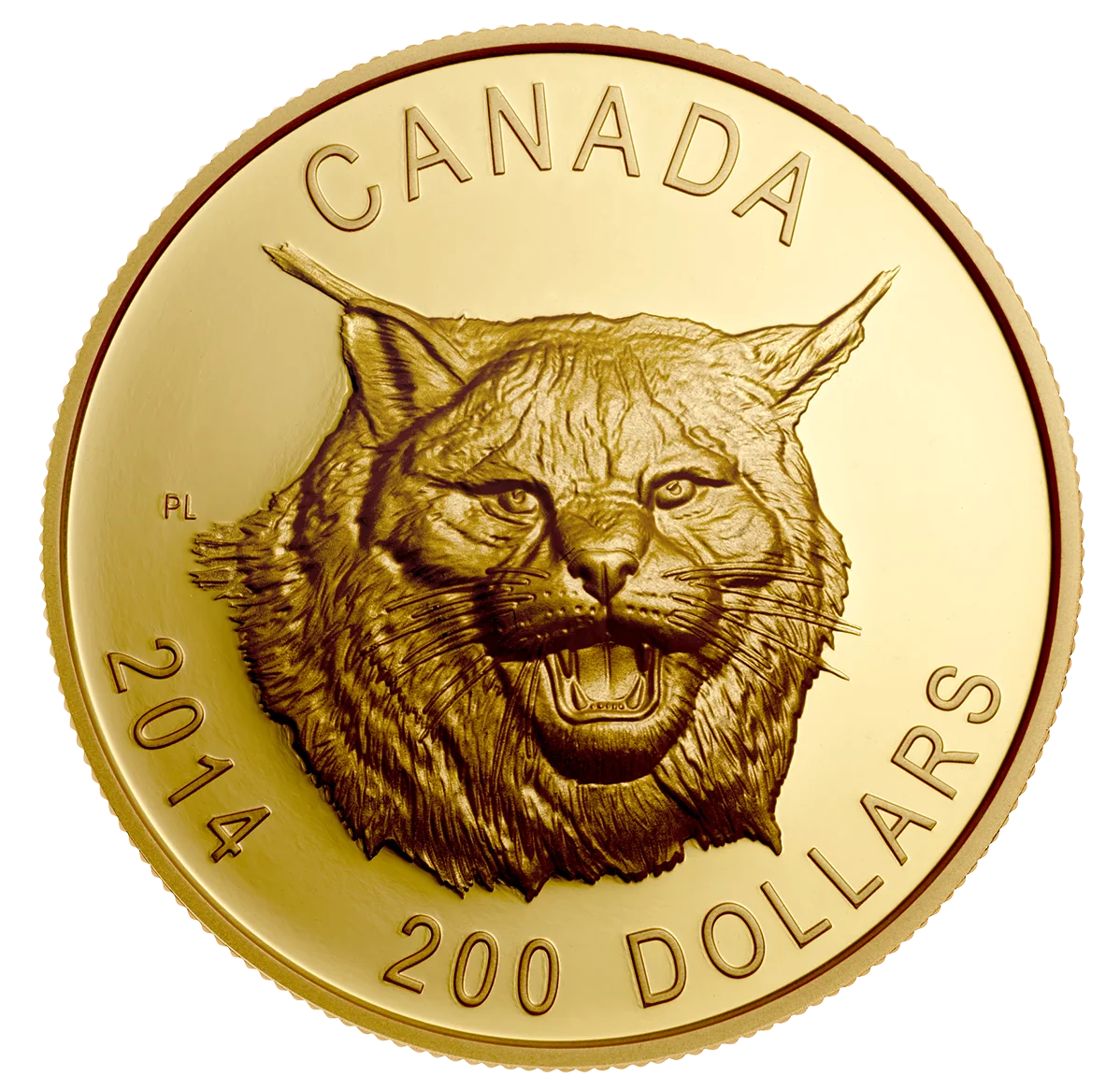 Pierre Leduc's motif captures a Canada lynx in a close-up winter portrait. Rendered with precise detail from its shaggy coat to its whiskers, the lynx snarls, fangs bared, its tufted ears pivoted as if detecting the viewer as an intruder.