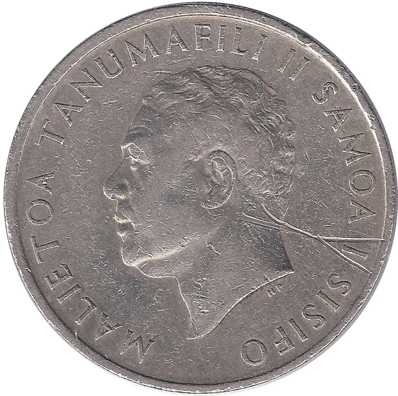Portrait of Malietoa Tanumafili II in left profile.