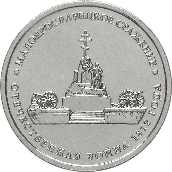 Center: relief of the 1812 Patriotic War monument. Rim: "МАЛОЯРОСЛАВЕЦКОЕ СРАЖЕНИЕ • ОТЕЧЕСТВЕННАЯ ВОЙНА 1812 ГОДА".