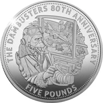 Pilot and plane design, inspired by 1955's *The Dam Busters* movie posters. Denomination below.