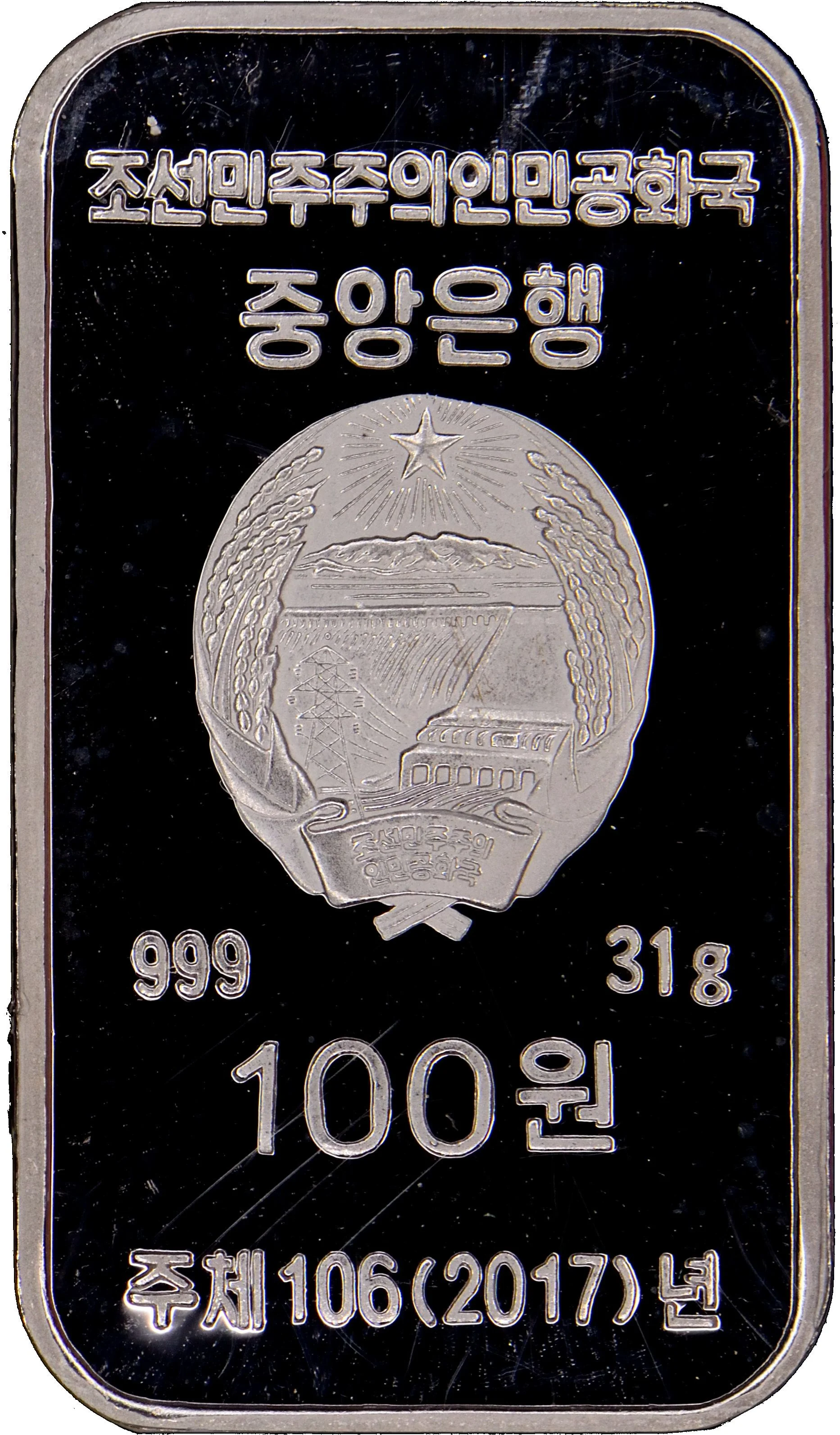 DPRK state seal with denomination and year.