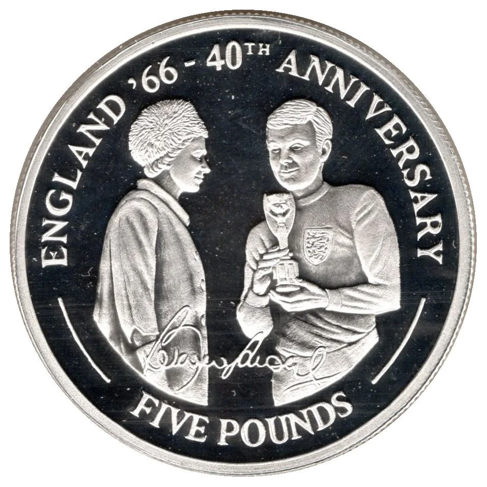 The Queen awarding the World Cup to Bobby Moore, with his signature.