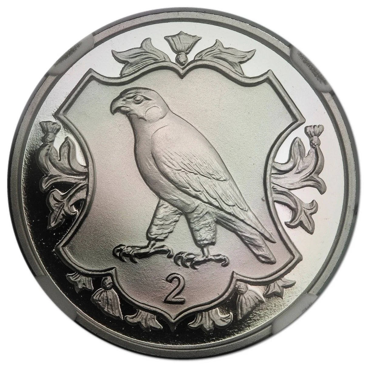 Peregrine falcon on a decorative shield.