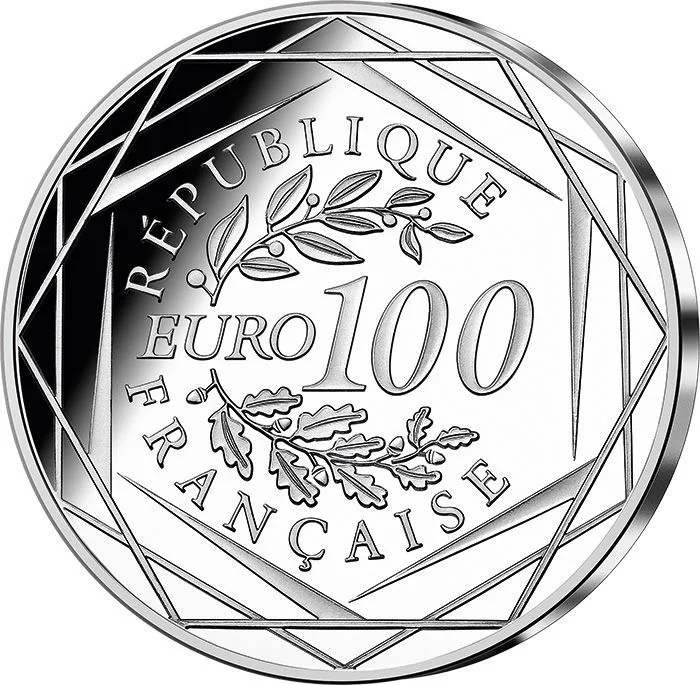 Laurel and oak branches frame the face value, surrounded by the inscription "RÉPUBLIQUE FRANÇAISE" and three hexagons.