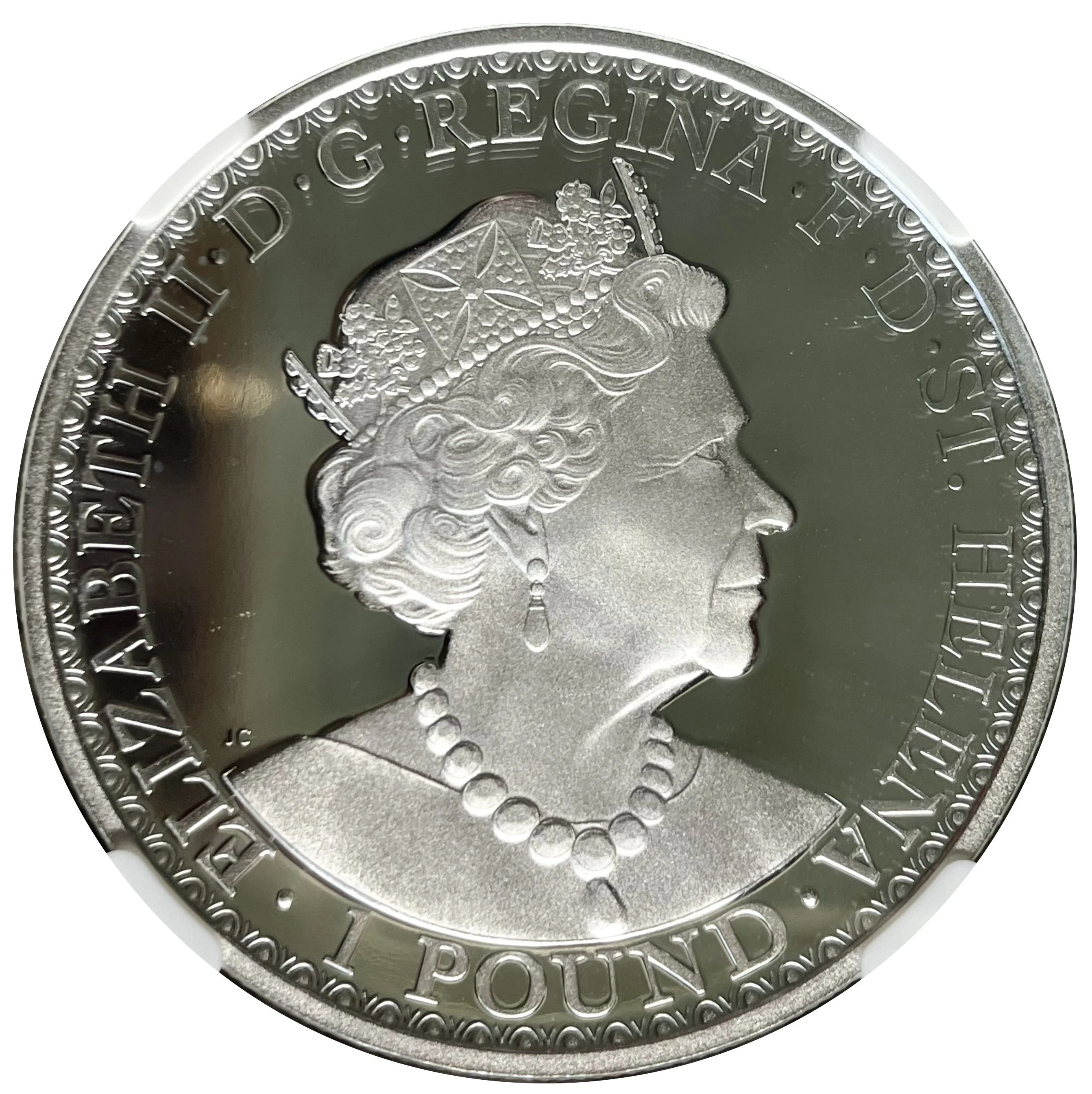 Translation: Elizabeth II, by the Grace of God, Queen, Defender of the Faith, St. Helena