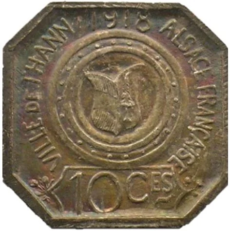 Town of Thann coat of arms in a circle, with issuer name around, date below, and face value above in a cartouche.