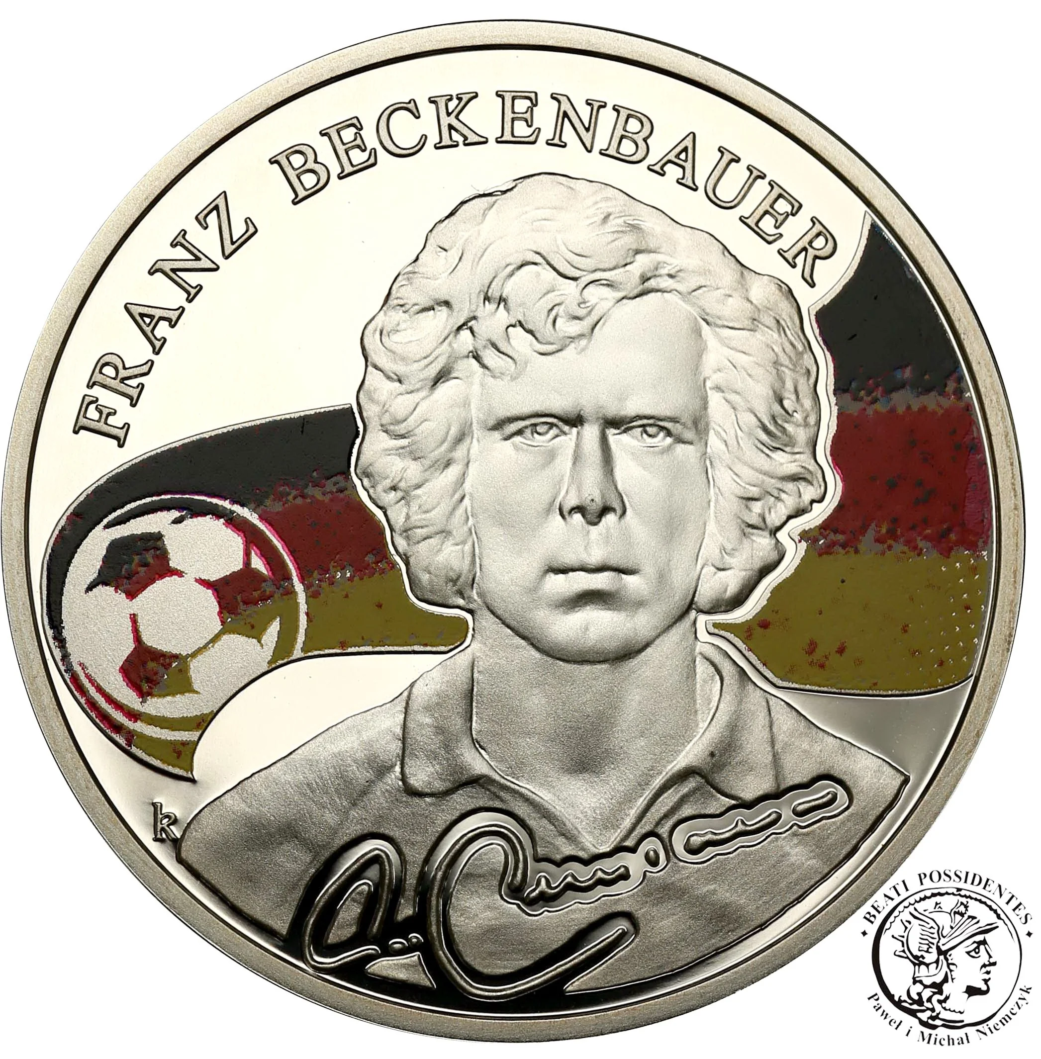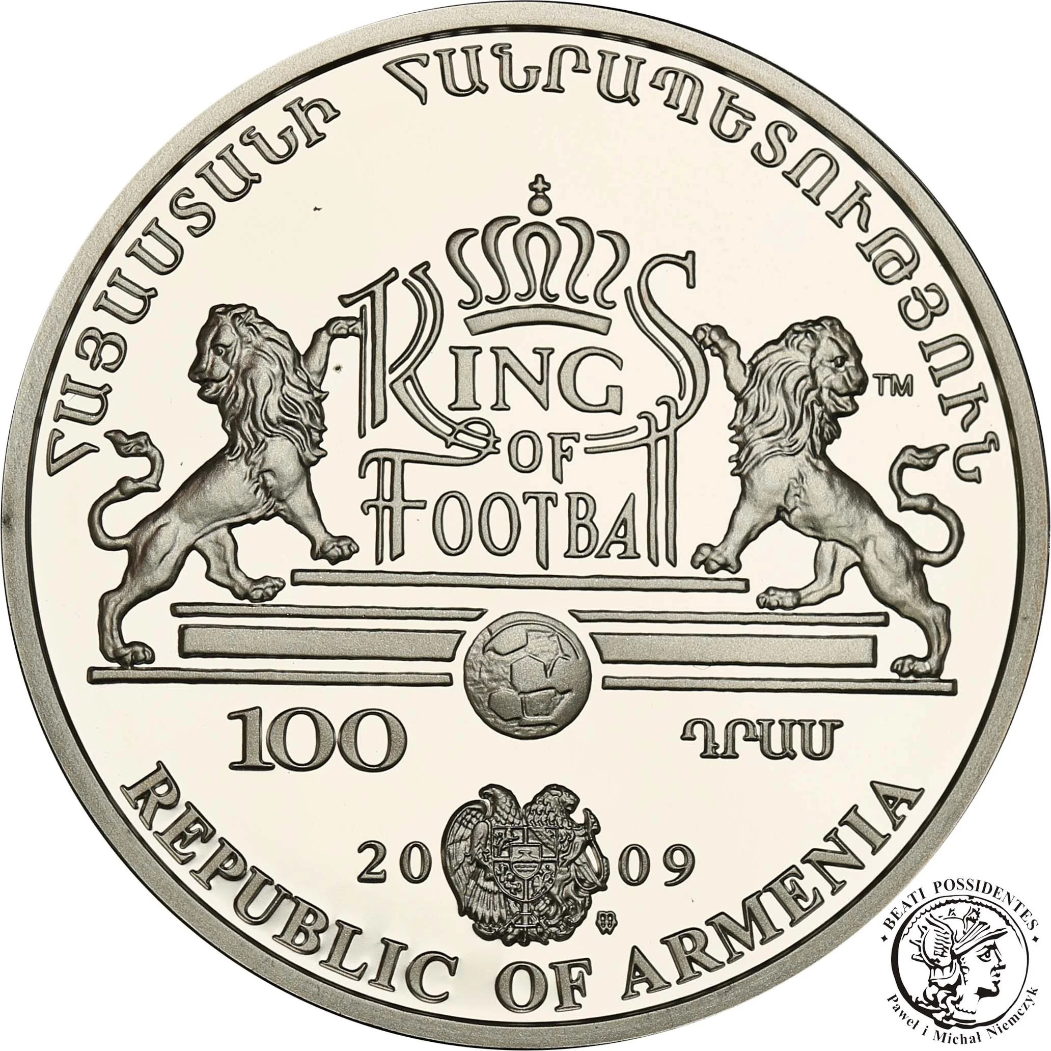 Two crowned lions flank the crowned text "Kings of Football" above a football, with the National Coat of Arms between the date below.