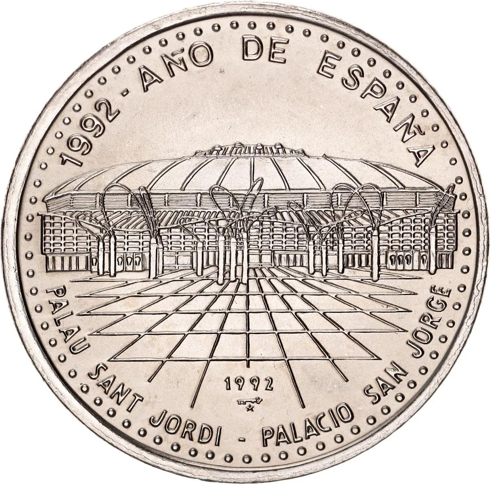 Image of Barcelona's Palau Sant Jordi. Series name curves along the top; location is below in Catalan and Spanish, with date and mintmark above.