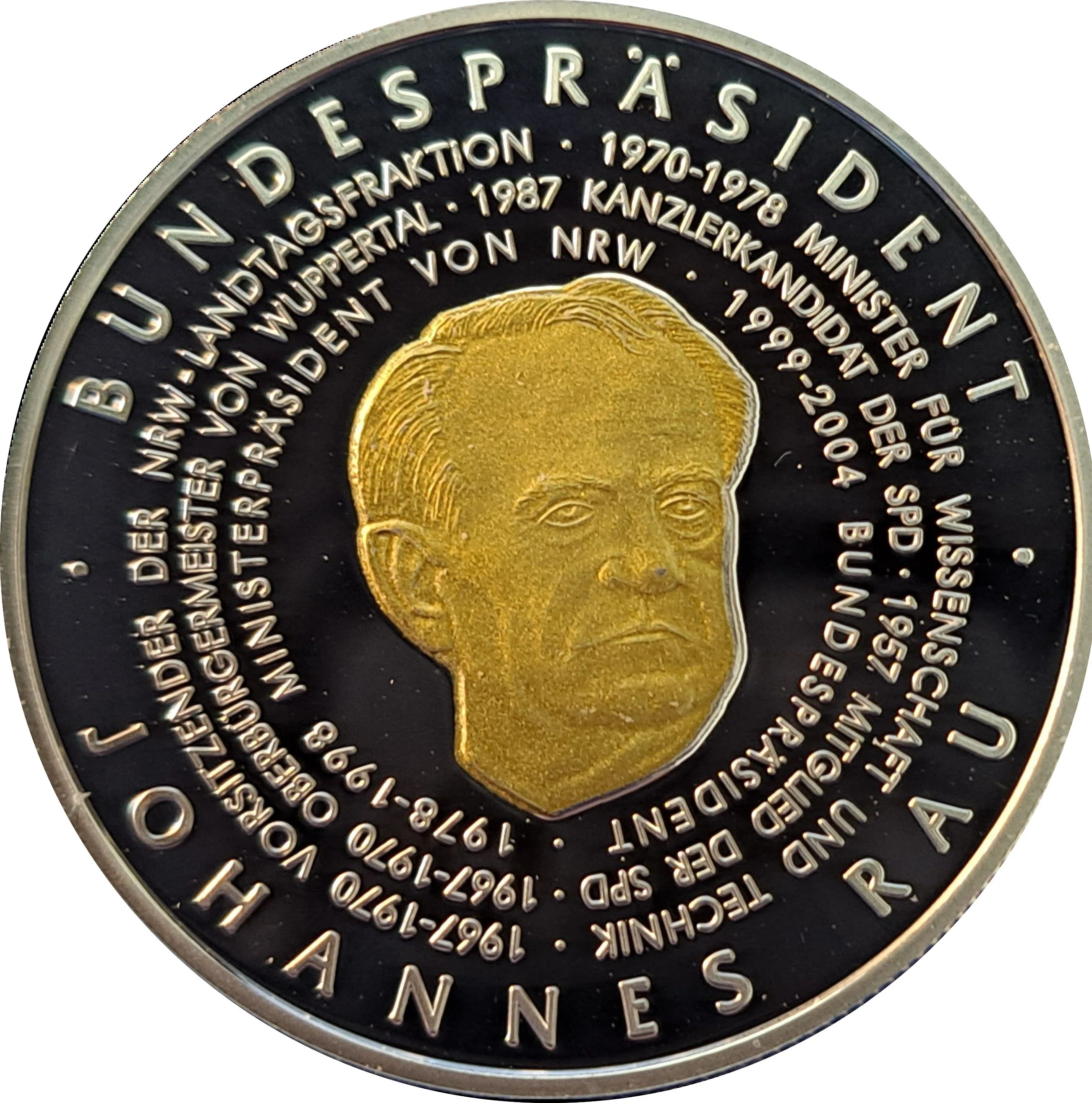 Description: Federal President Johannes Rau on gilt coin.