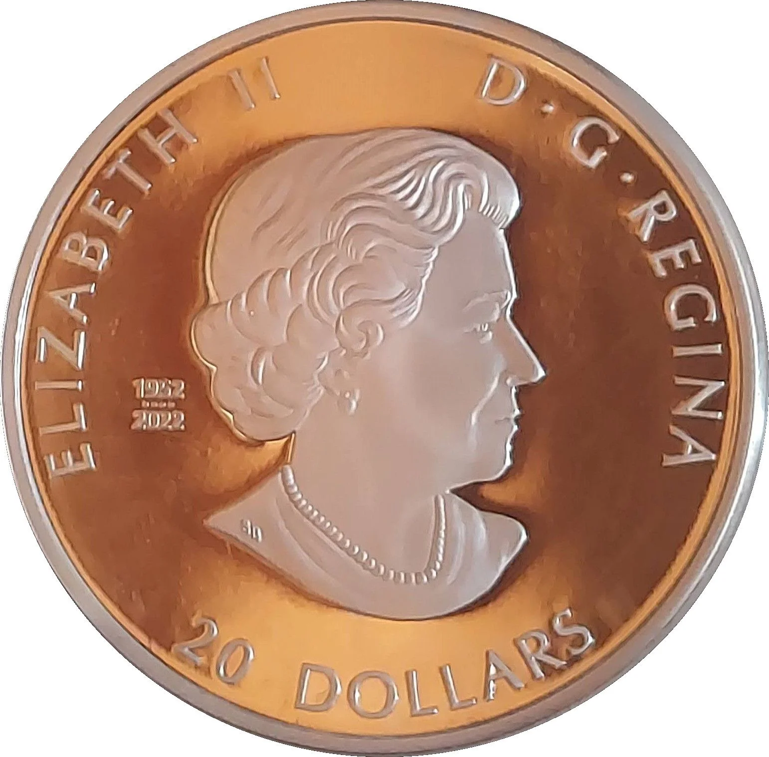 Queen Elizabeth II at 77, facing right, wearing necklace and earrings. The obverse features four pearls symbolizing previous Canadian coin effigies and her reign's double date.