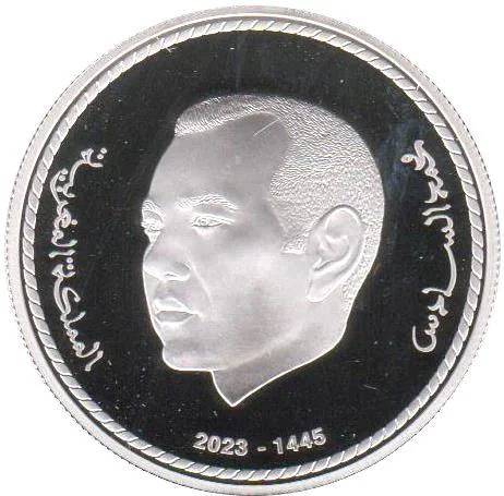 Obverse: Effigy of King Mohammed VI with the inscriptions "محمد السادس" and "المملكة المغربية" and the year 2023-1445.