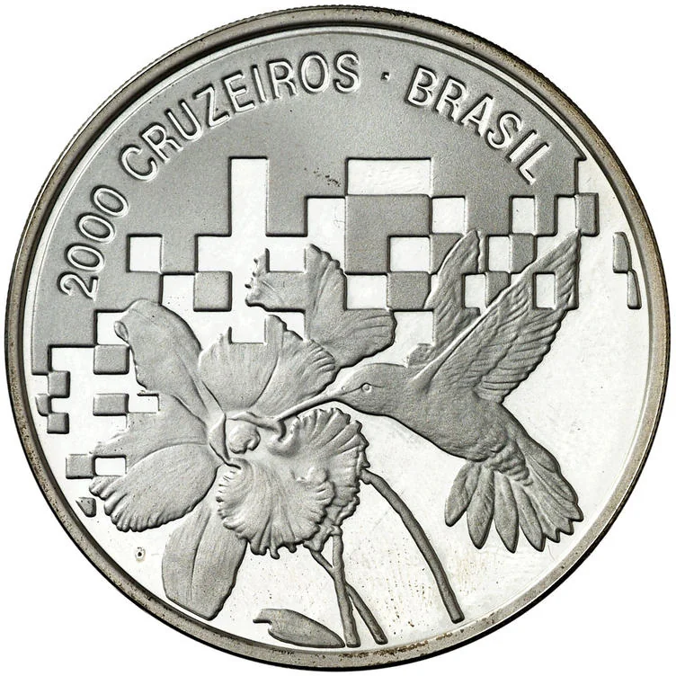Hummingbird and orchid with "2000 CRUZEIROS" and "BRASIL" text.