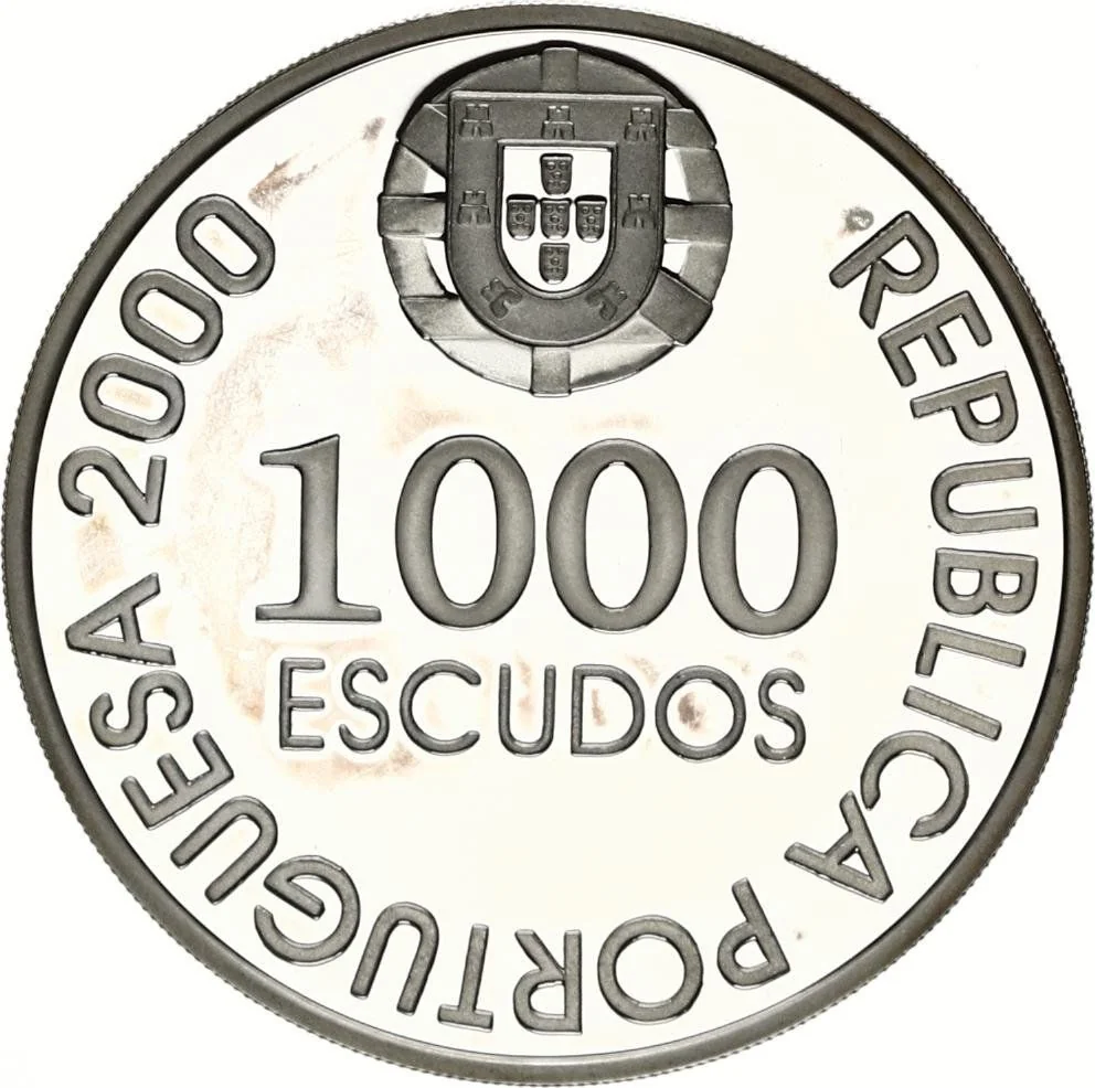 Portuguese coat of arms with "1000 ESCUDOS" below. "REPUBLICA PORTUGUESA" and the issue year are on the scroll.