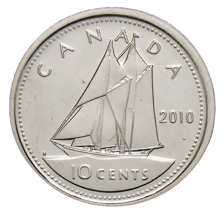 The Bluenose, a celebrated Canadian schooner and symbol of Nova Scotia, under sail with its face value and "CANADA."