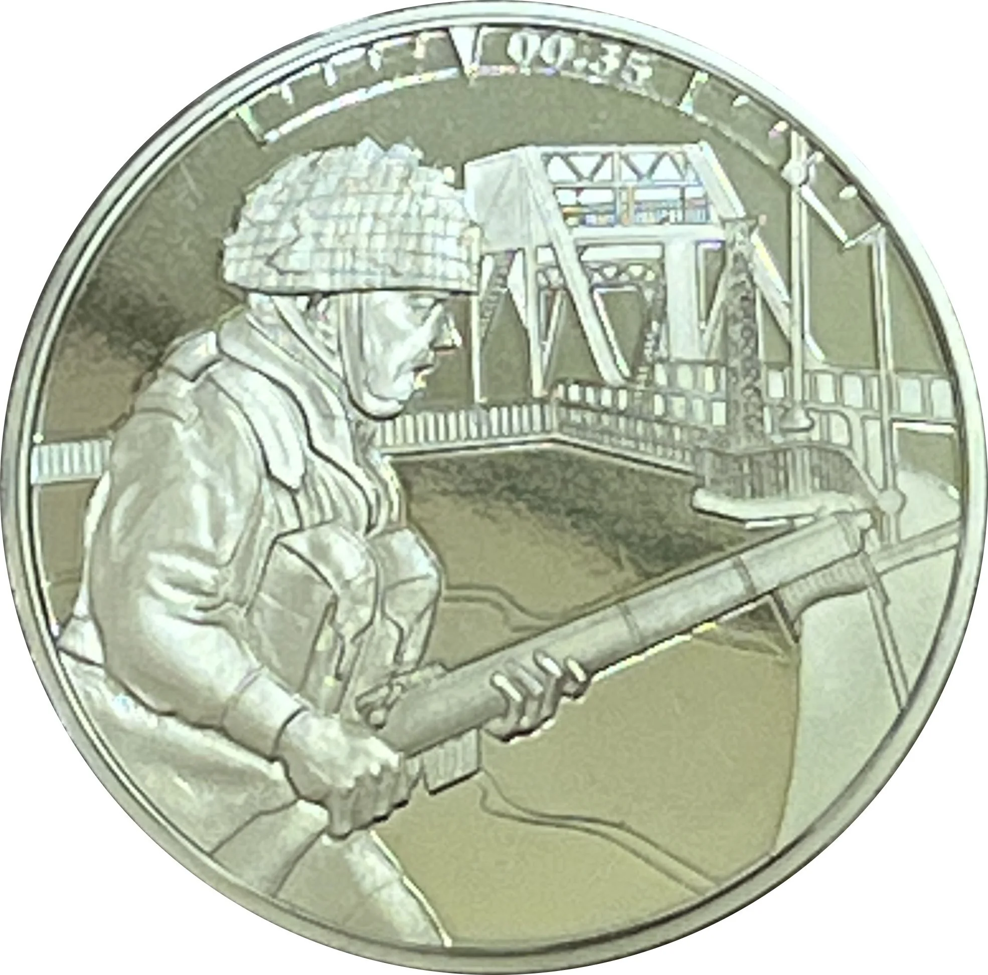 British soldier advances toward bridge.