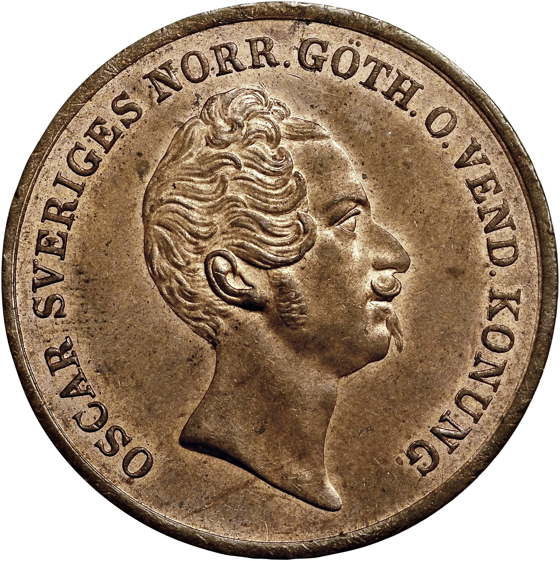 King Oscar I facing right, surrounded by legend.