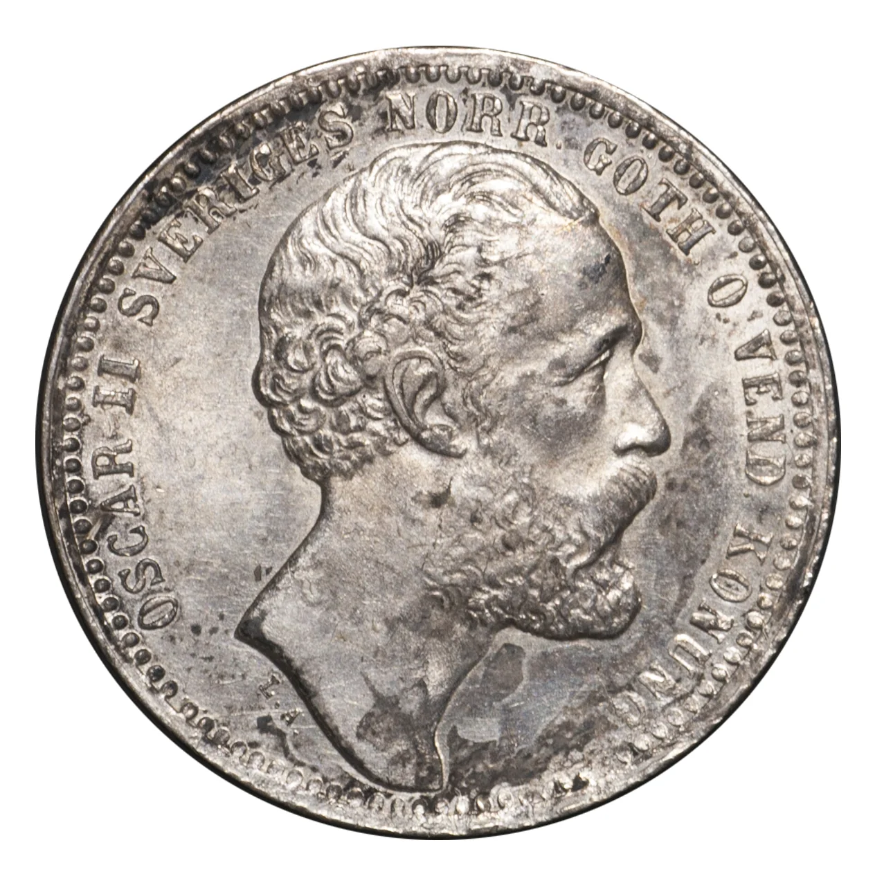 King Oscar II facing right, inscription around. Engraver initials below neck.