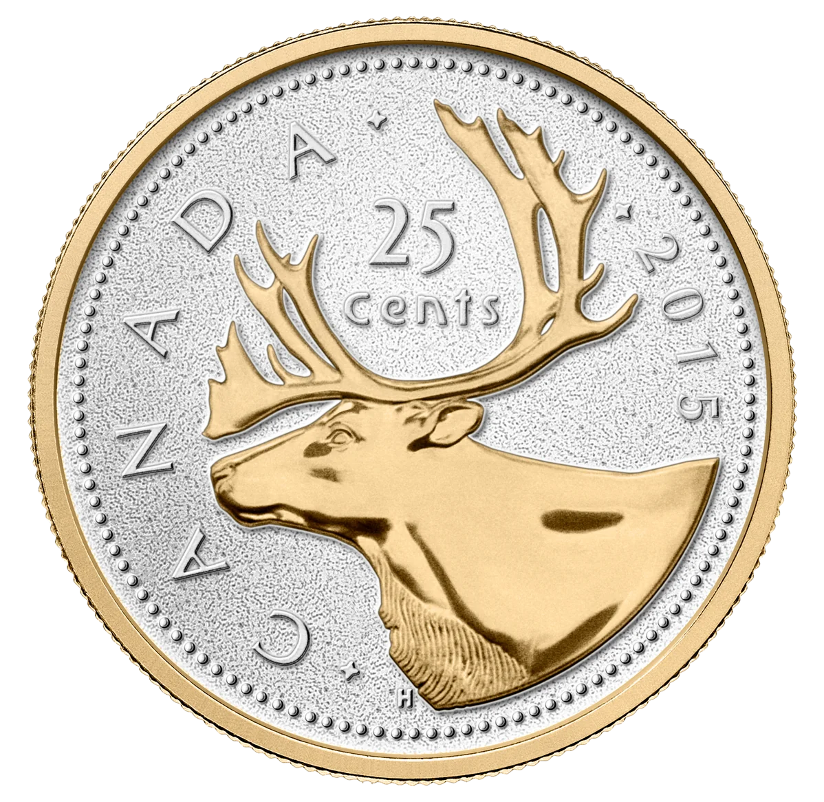 The reverse features Emanuel Hahn's gold-plated profile of a majestic caribou with antlers, matching the gold-plated bead.